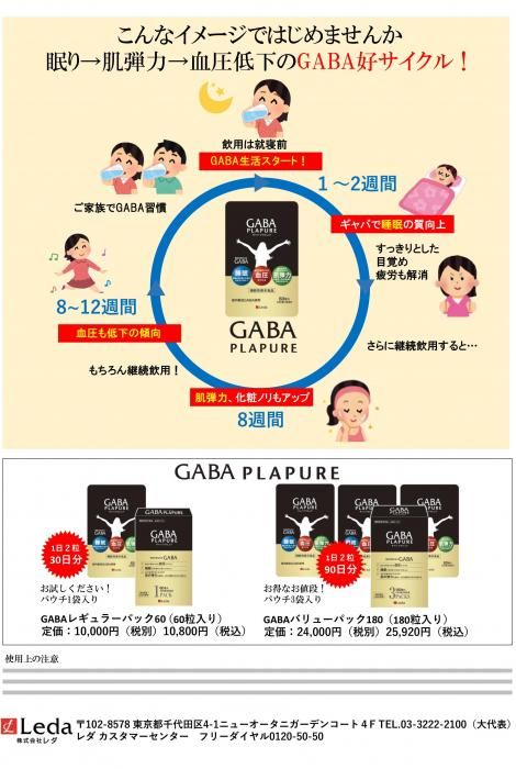 GABAには睡眠の質(眠りの深さ)の向上に役立つ機能、血圧が高めの方の血圧を低下させる機能、肌の乾燥が気になる方の肌の弾力を維持し、肌の健康を守るのを助ける機能があることが報告されています。